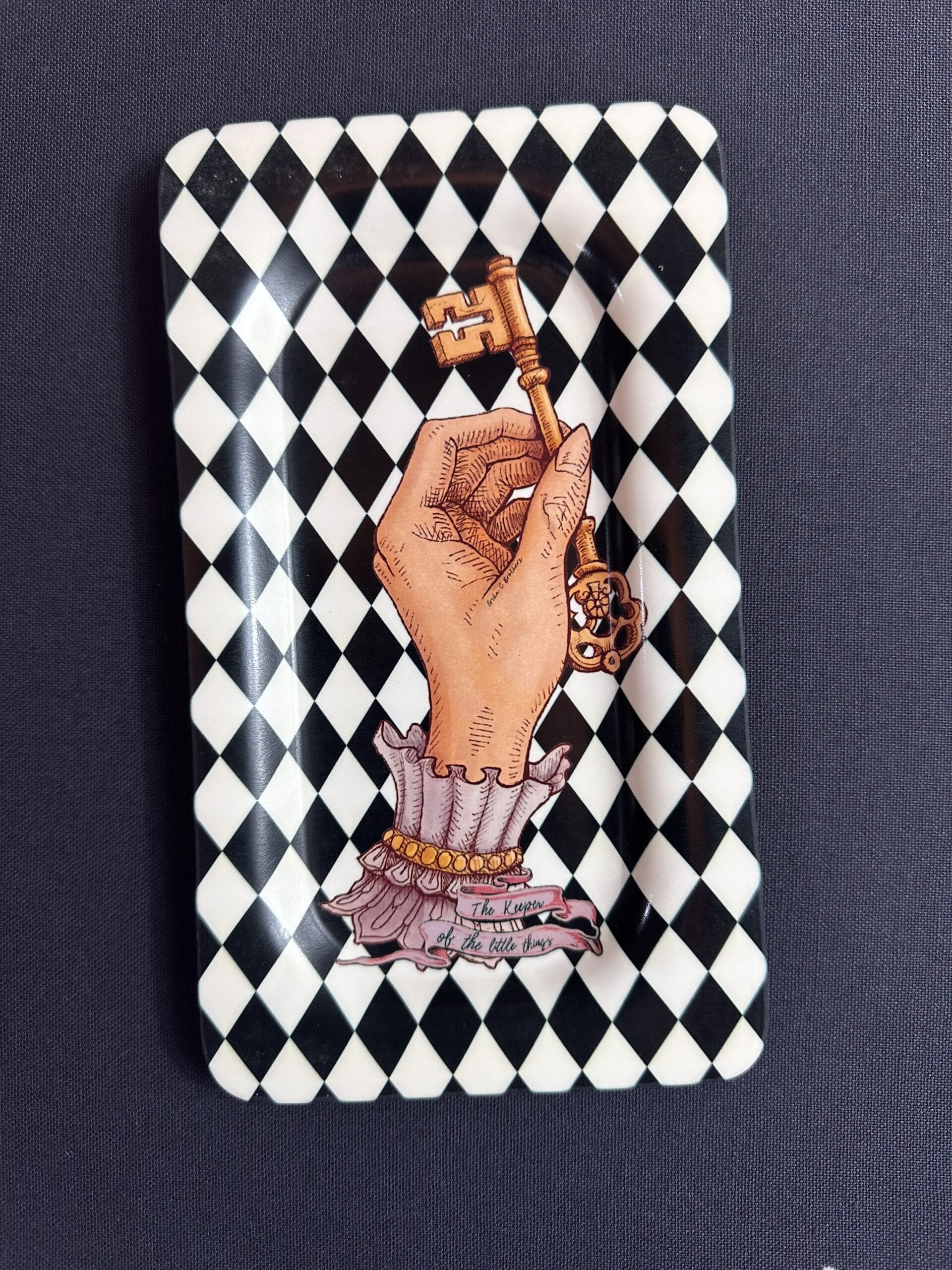 Serving trays to impress guests with a unique hospitality experience through art. Made from scratchproof plastic and sustainably printed, these robust trays are ideal for everyday use. Available in three sizes, they adapt beautifully to your needs — from a dinner lap tray with its easy-clean, glossy surface to a small decorative piece. Hand wash only.