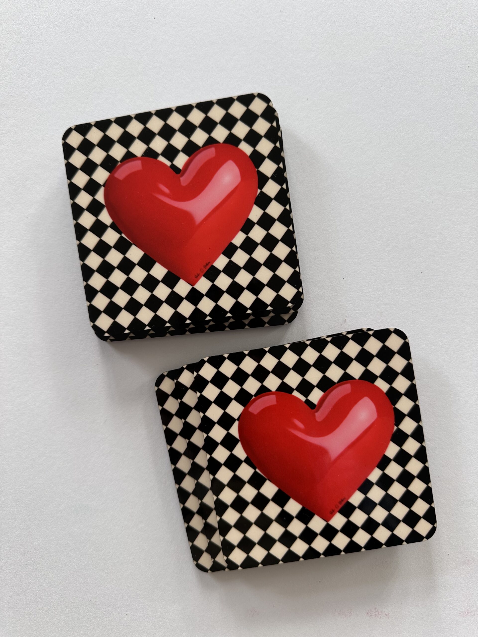Add a bold pop of love to your space with these Red Heart Pop Art Coasters. Featuring a vibrant, glossy red heart over a classic black and white checkered background, this set brings a playful, maximalist touch to any table setting.