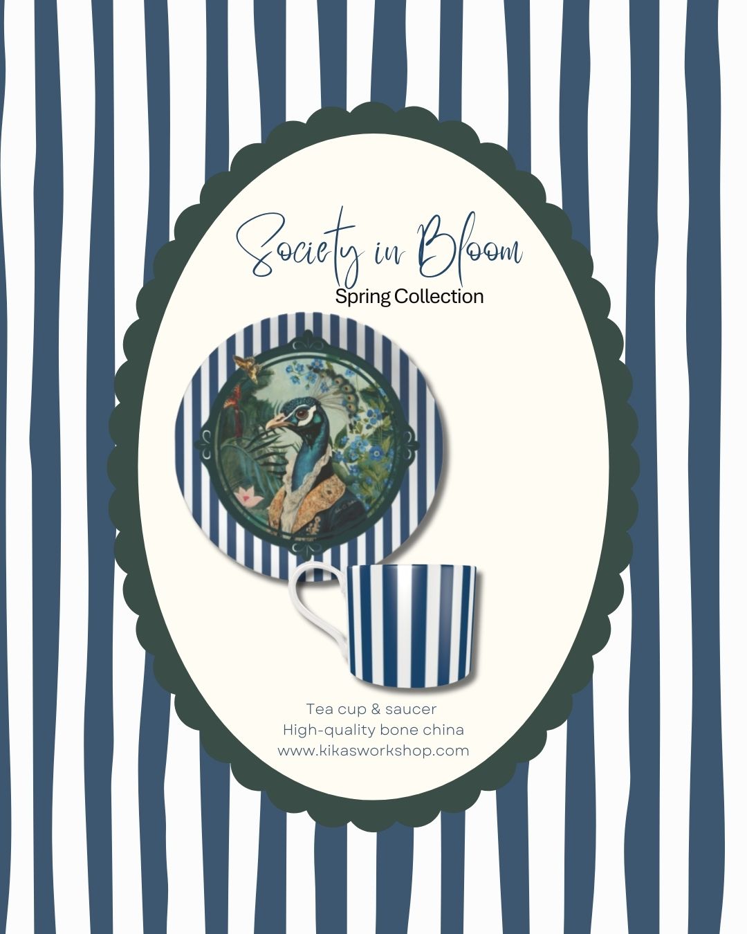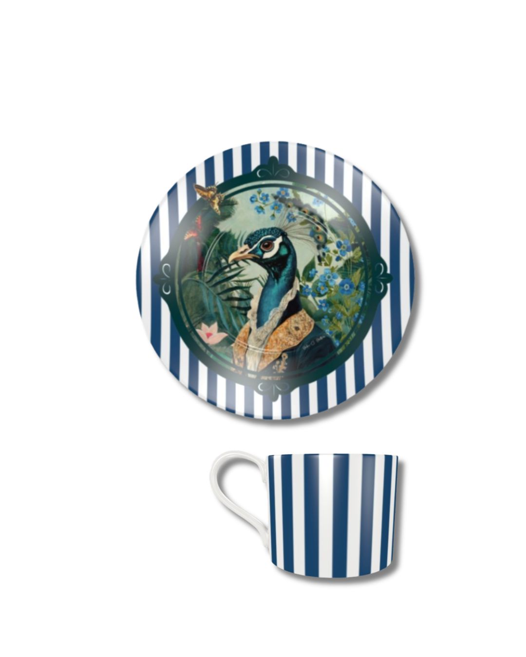 Inspired by a fictional Victorian residence in Notting Hill, this illustrated spring charger plate features Señor Colibrí — poet, tea lover, and quiet observer of botanical mornings.